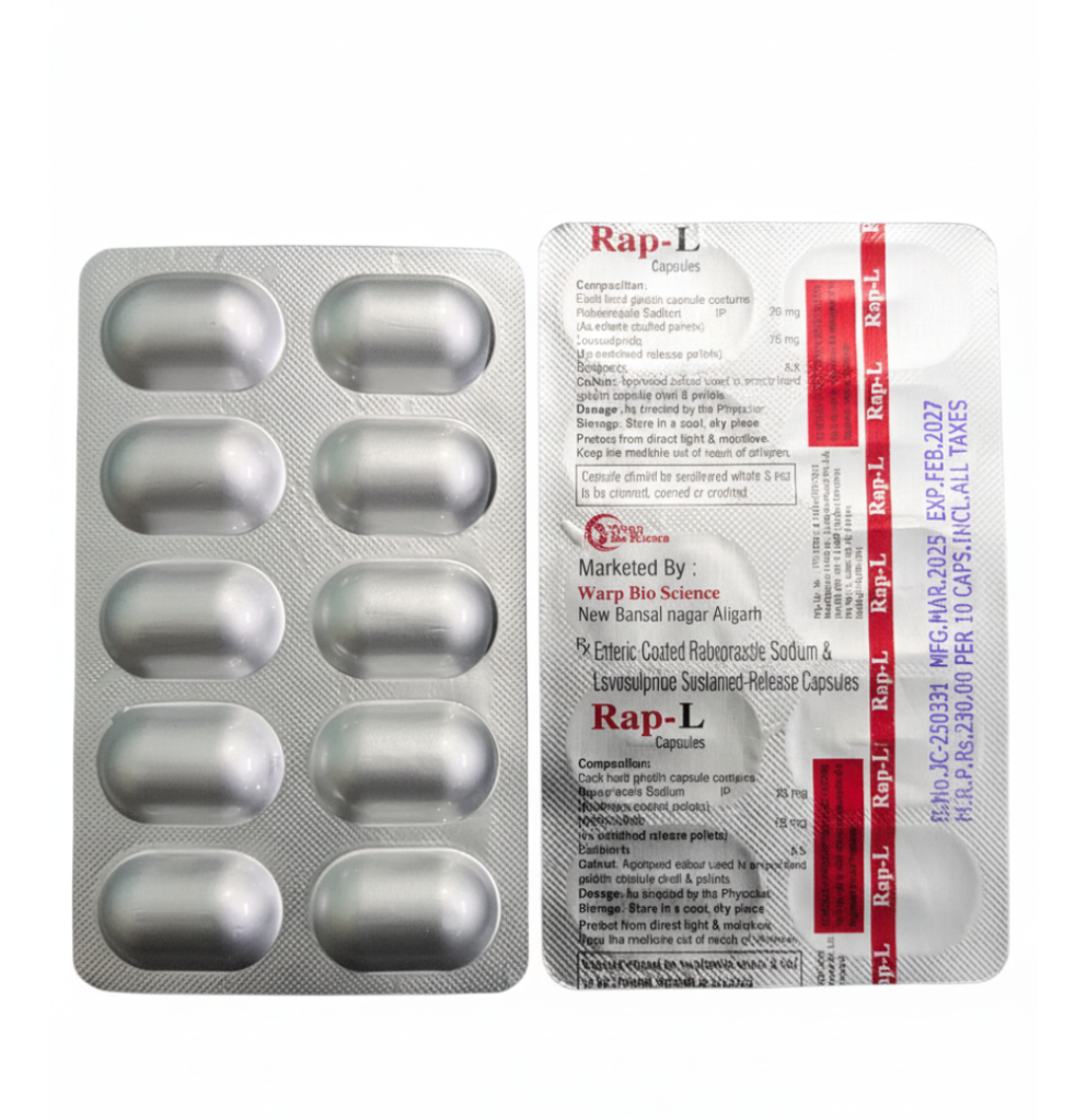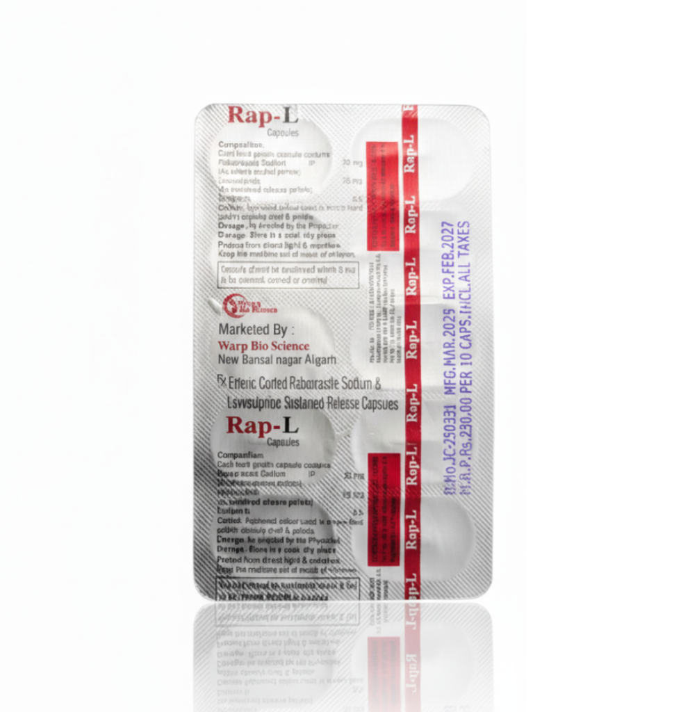 Marketed by WarpBio Science, RaP-L Capsules are a prescription-grade medication meticulously formulated to manage conditions caused by excess stomach acid. By integrating two distinct and powerful active ingredients into an advanced delivery system, RaP-L provides fast-acting and long-lasting comfort, helping you regain control over your digestive health.